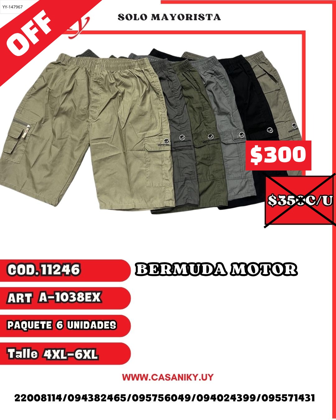 Cod. 11246 Art.: A-1038EX Paquetes 6 unidades Talle 4XL-6XL