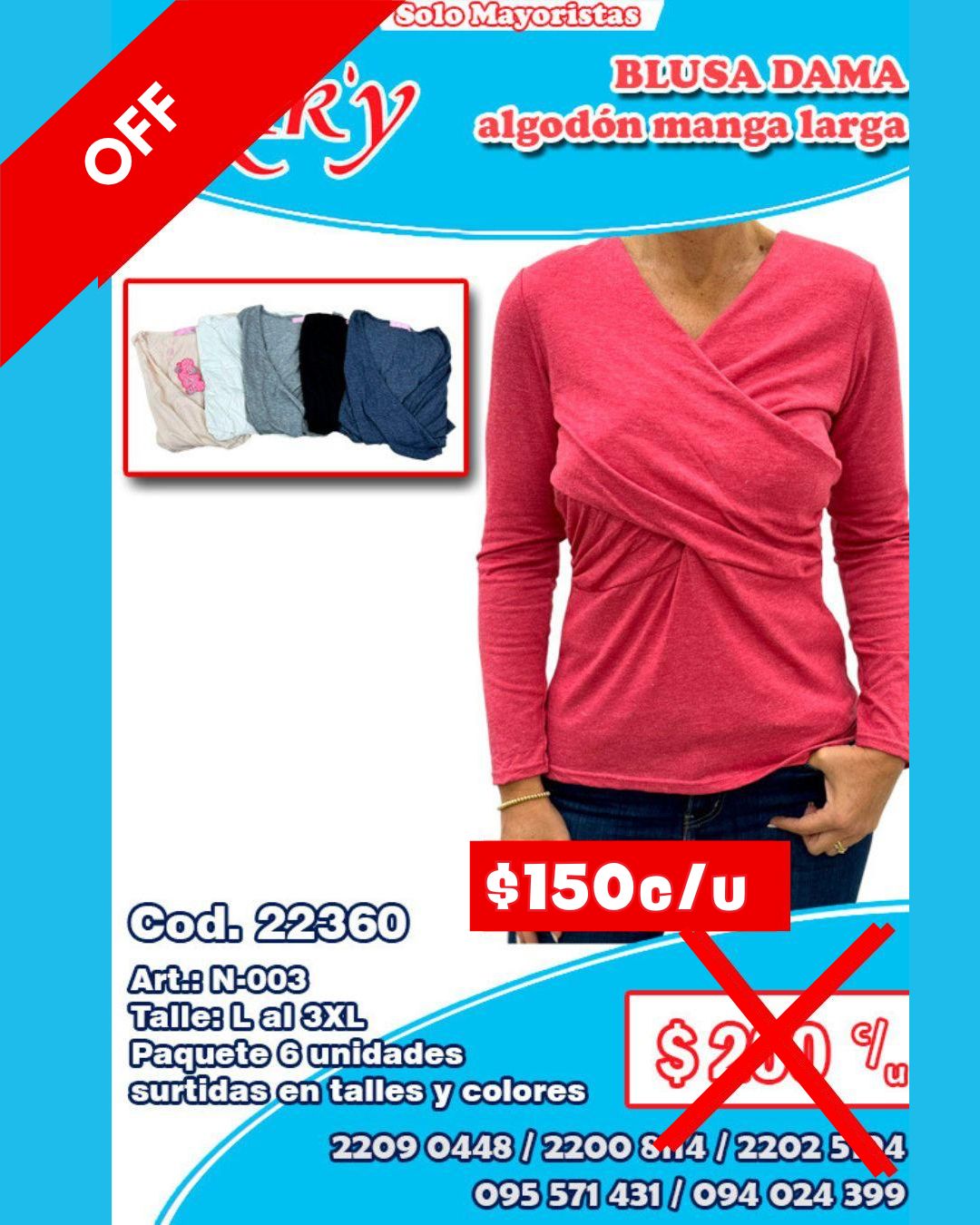 Cod. 22360 Art.: N-003 Talles: L al 3XL Paquete 6 unidades surtida en talles y colores Precio por unidad
