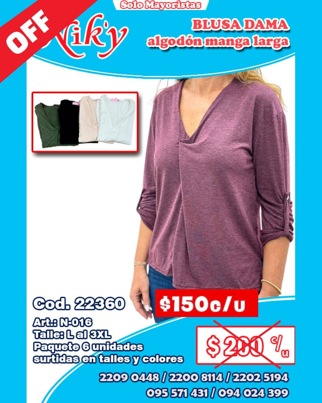 Cod. 22360 Art.: N-016 Talles: L al 3XL Paquete 6 unidades surtida en talles y colores Precio por unidad