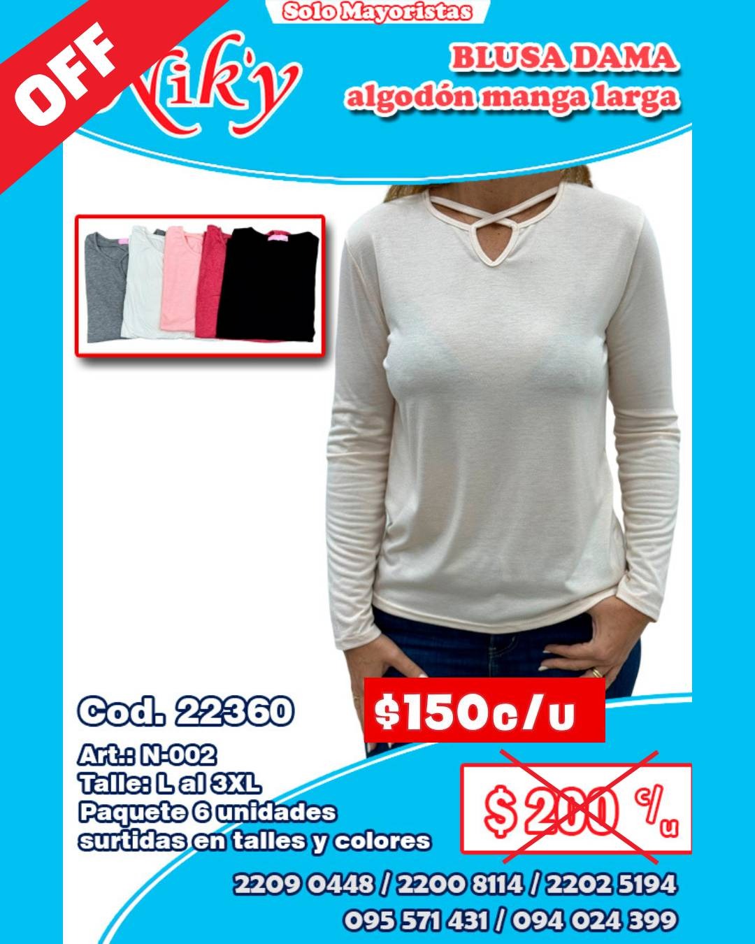 Cod. 22360 Art.: N-002 Talles: L al 3XL Paquete 6 unidades surtida en talles y colores Precio por unidad