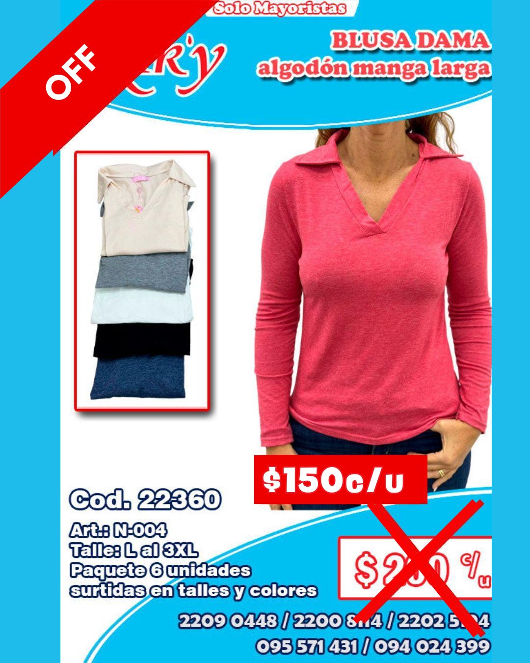 Cod. 22360 Art.: N-004 Talles: L al 3XL Paquete 6 unidades surtida en talles y colores Precio por unidad