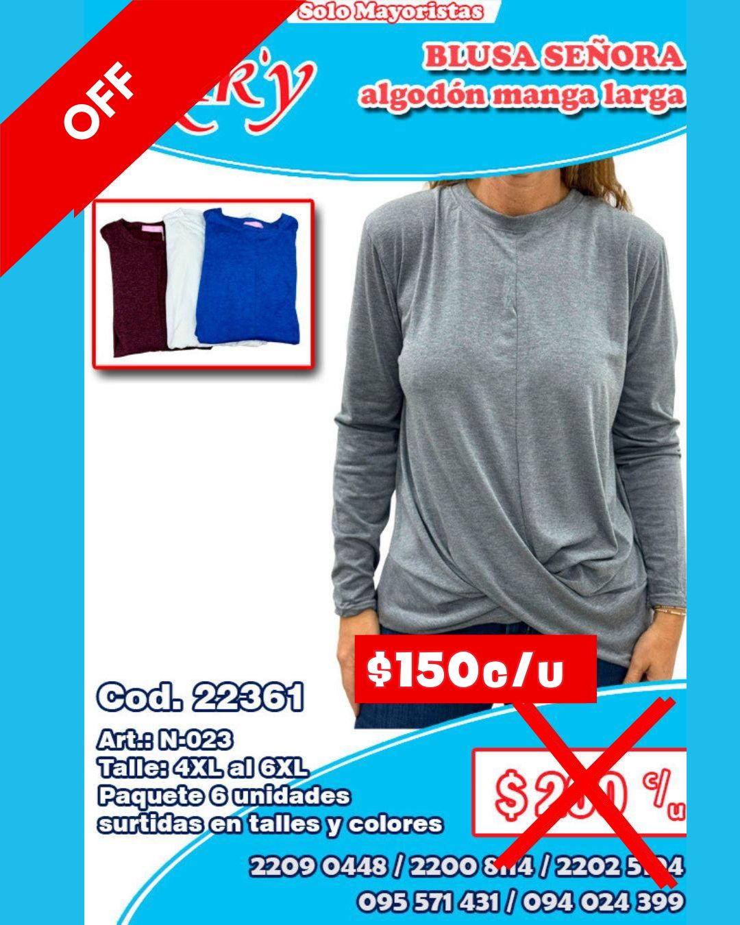 Cod. 22361 Art.: N-023 Talles: 4XL al 6XL Paquete 6 unidades surtida en talles y colores Precio por unidad