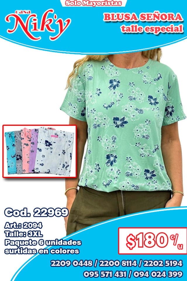 Cod. 22969 Art.: 2094 Talles: 3XL Paquete 6 unidades surtida en talles y colores Precio por unidad