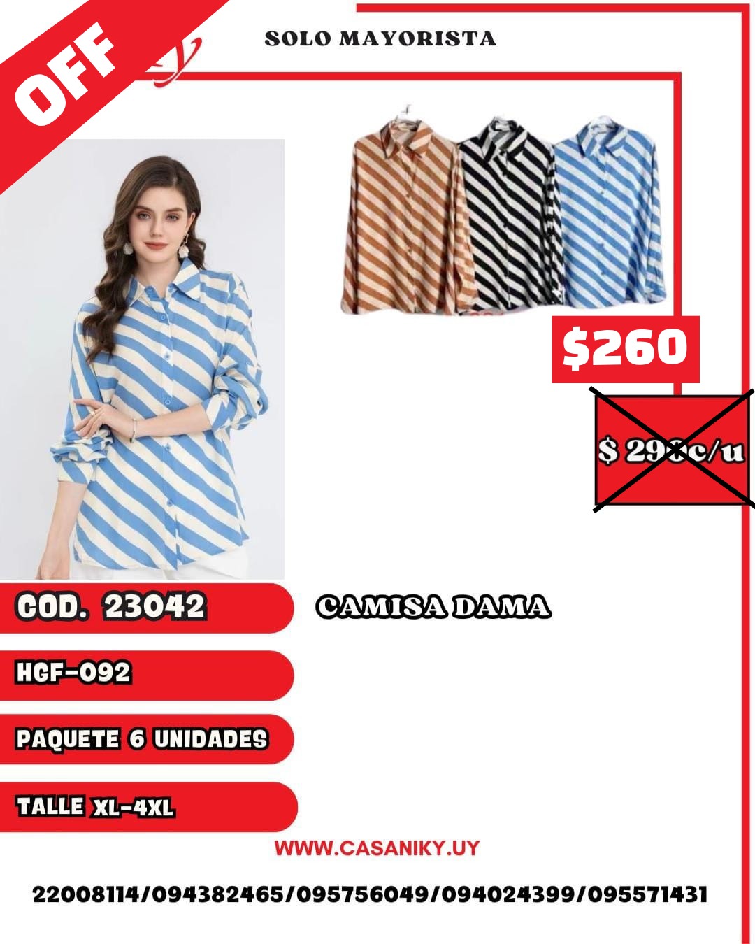 Cod. 23042 Art.: HGF-092 Talles: XL – 4XL Paquete 6 unidades surtida en colores Precio por unidad