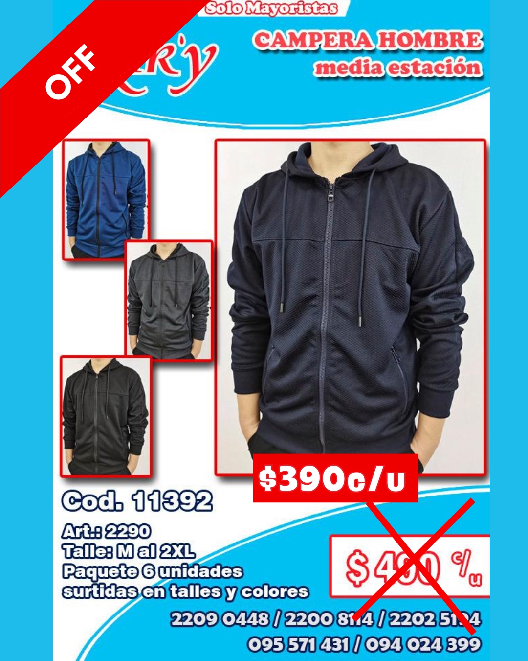 Cod. 11392 Art.: 2290 Talles: M al 2XL Paquete 6 unidades surtida en talles y colores Precio por unidad