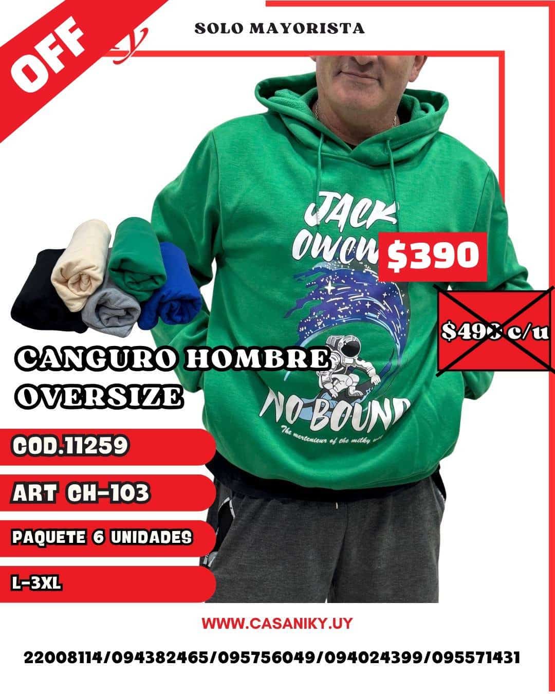 Cod.:11259 Art.: 103 Talle: L al 3XL Paquete 6 unidades surtidas en talles y colores Precio por unidad
