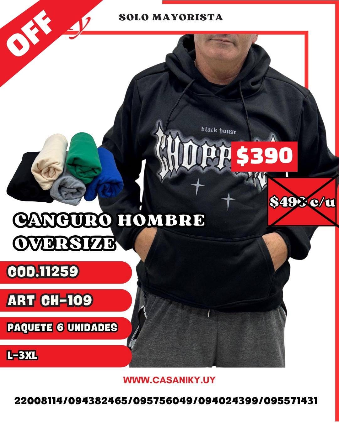 Cod.:11259 Art.: 109 Talle: L al 3XL Paquete 6 unidades surtidas en talles y colores Precio por unidad