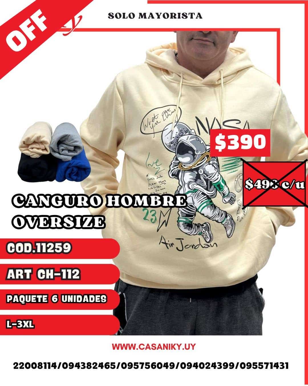 Cod.:11259 Art.: 112 Talle: L al 3XL Paquete 6 unidades surtidas en talles y colores Precio por unidad