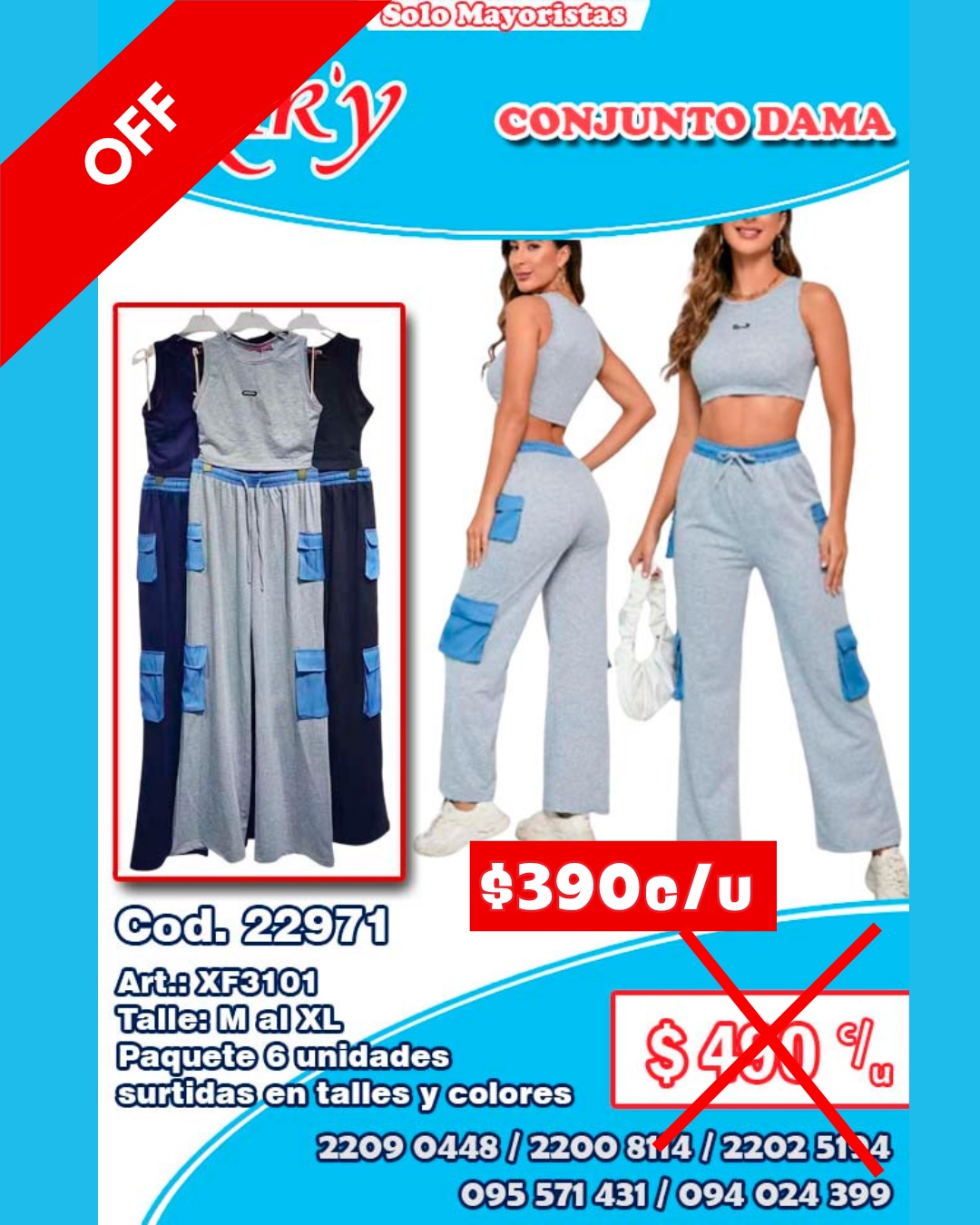 Cod. 22971 Art.: XF3101 Talles: M al XL Paquete 6 unidades surtida en talles y colores Precio por unidad