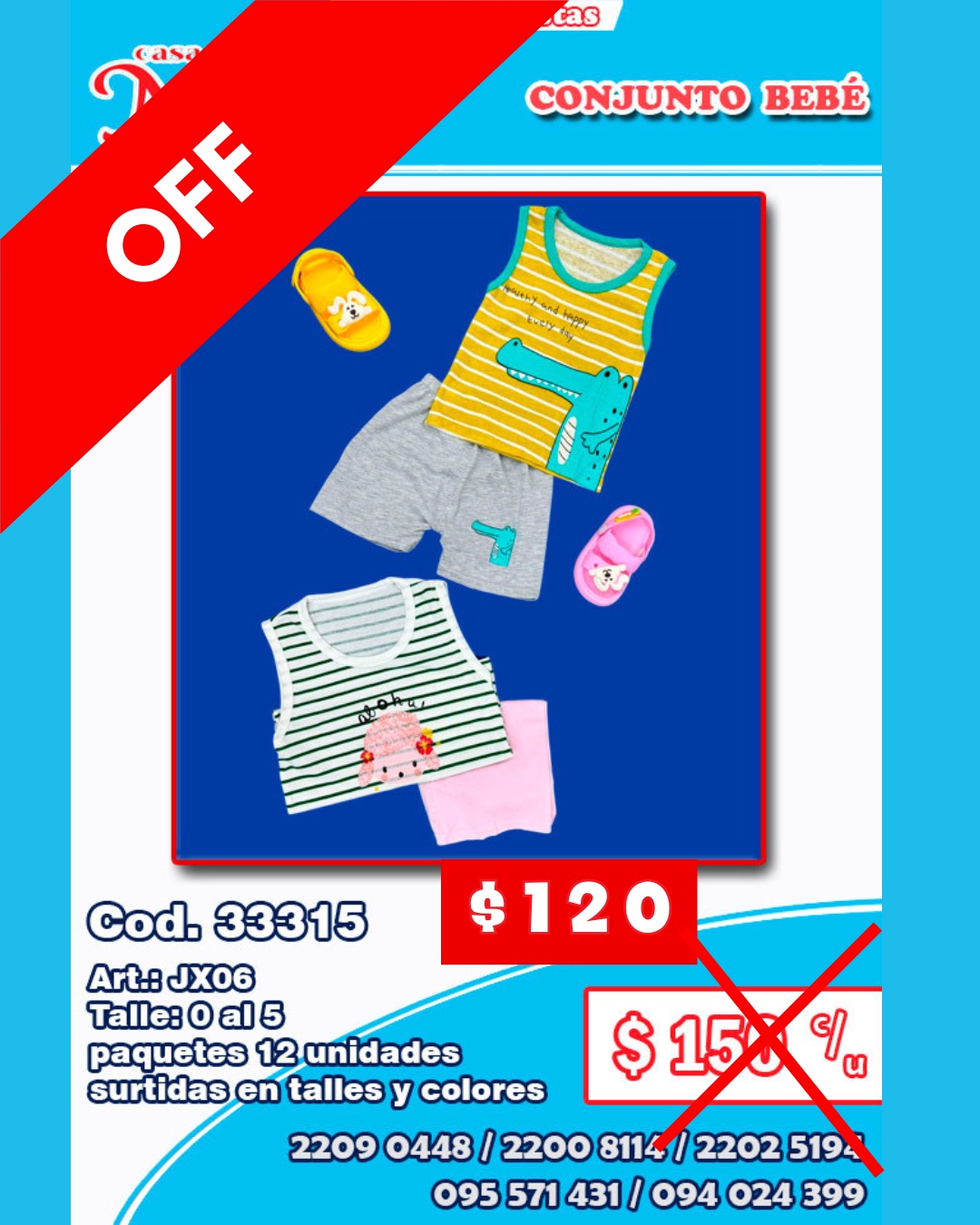 Cod. 33315 Art.: JX06 Talle: 0 al 5 Paquete 12 unidades Surtidas en talles y colores