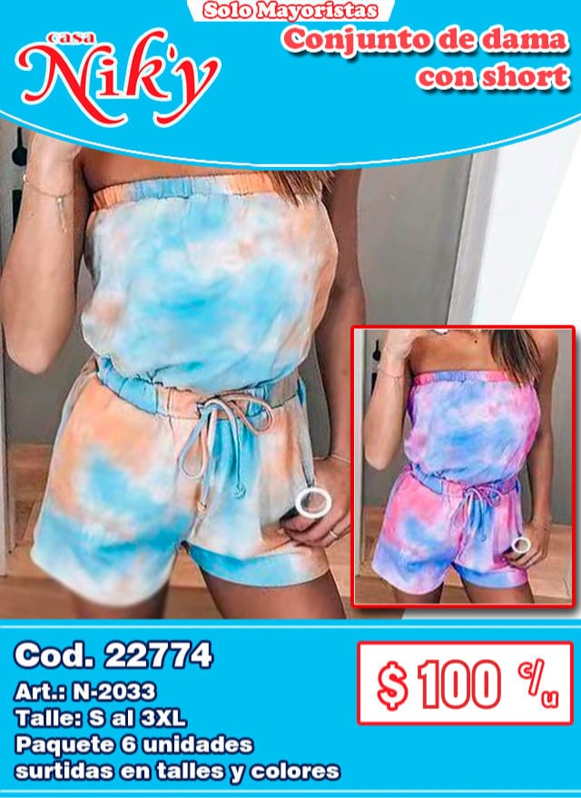 Cod. 22774 Art.: N-2033 Talles: S – 3XL Paquete 6 unidades surtida en talles y colores Precio por unidad