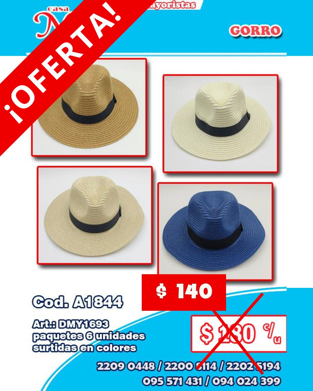 Cod. A1844 Art.: DMY1693 paquetes 6 unidades surtidas en colores Precio por unidad