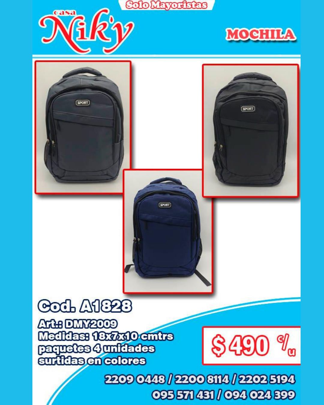 Cod. A1828 Art.: DMY2009 Medidas: 18x7x10 cmtrs paquetes 4 unidades surtidas en colores Precio por unidad