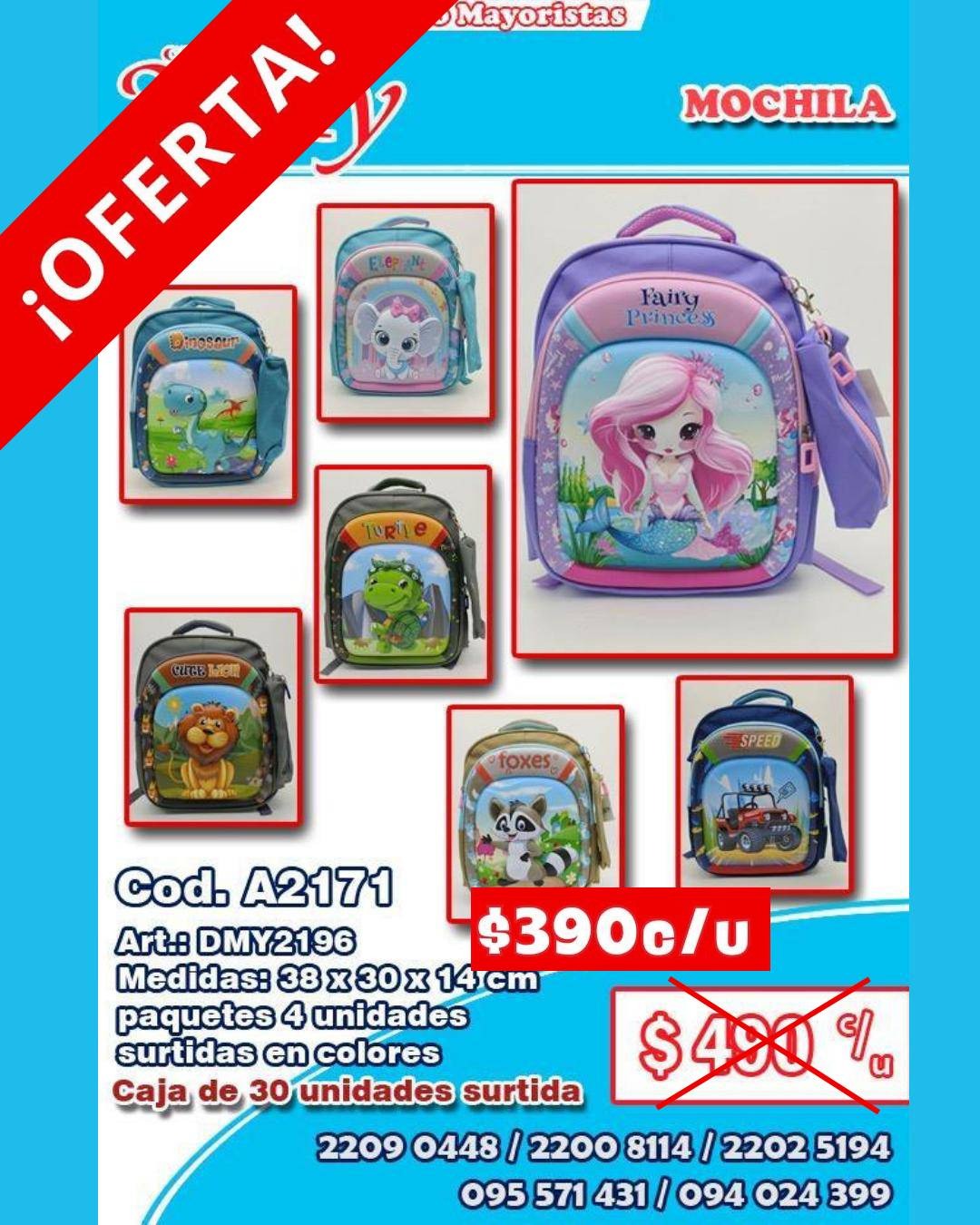 Cod. A2171 Art.: DMY2196 Medidas: 38 x 30 x 14 cm paquetes 4 unidades surtidas en colores Caja de 30 unidades surtida Precio por unidad