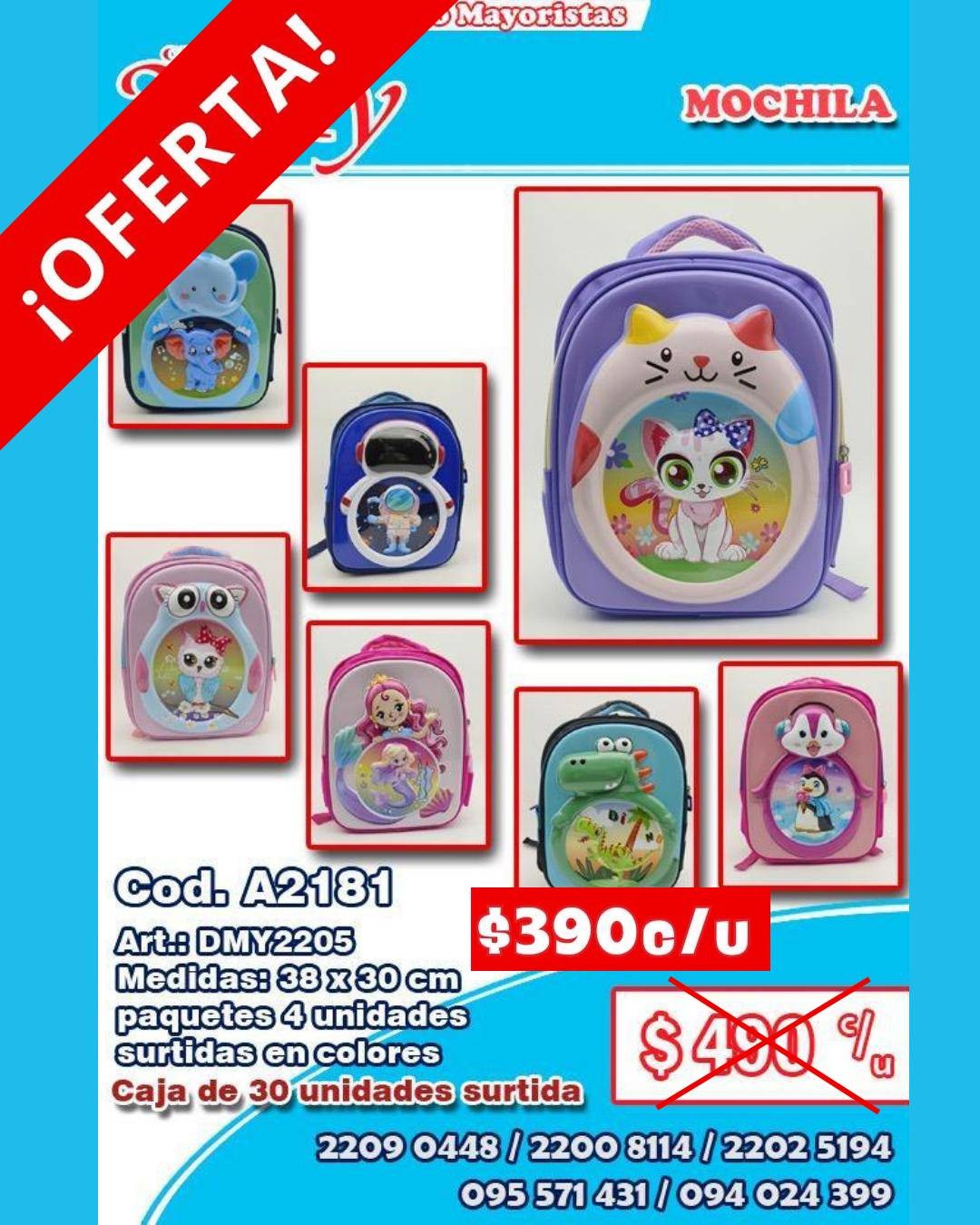 Cod. A2181 Art.: DMY2205 Medidas: 38 x 30 cm paquetes 4 unidades surtidas en colores Caja de 30 unidades surtida Precio por unidad