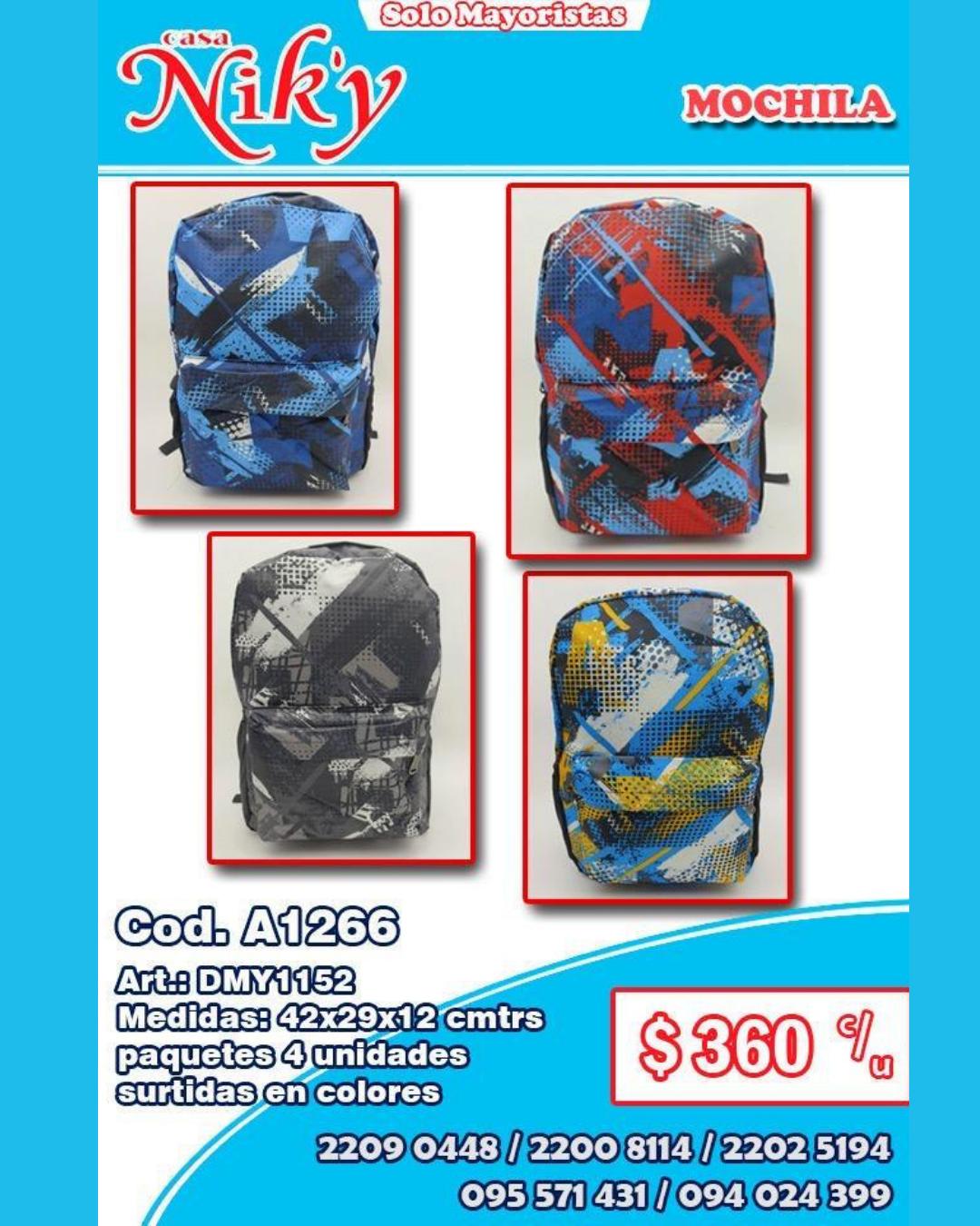 Cod. A1266 Art.: DMY1152 Medidas: 42 x 29 x 12 cm paquetes 4 unidades surtidas en colores Precio por unidad
