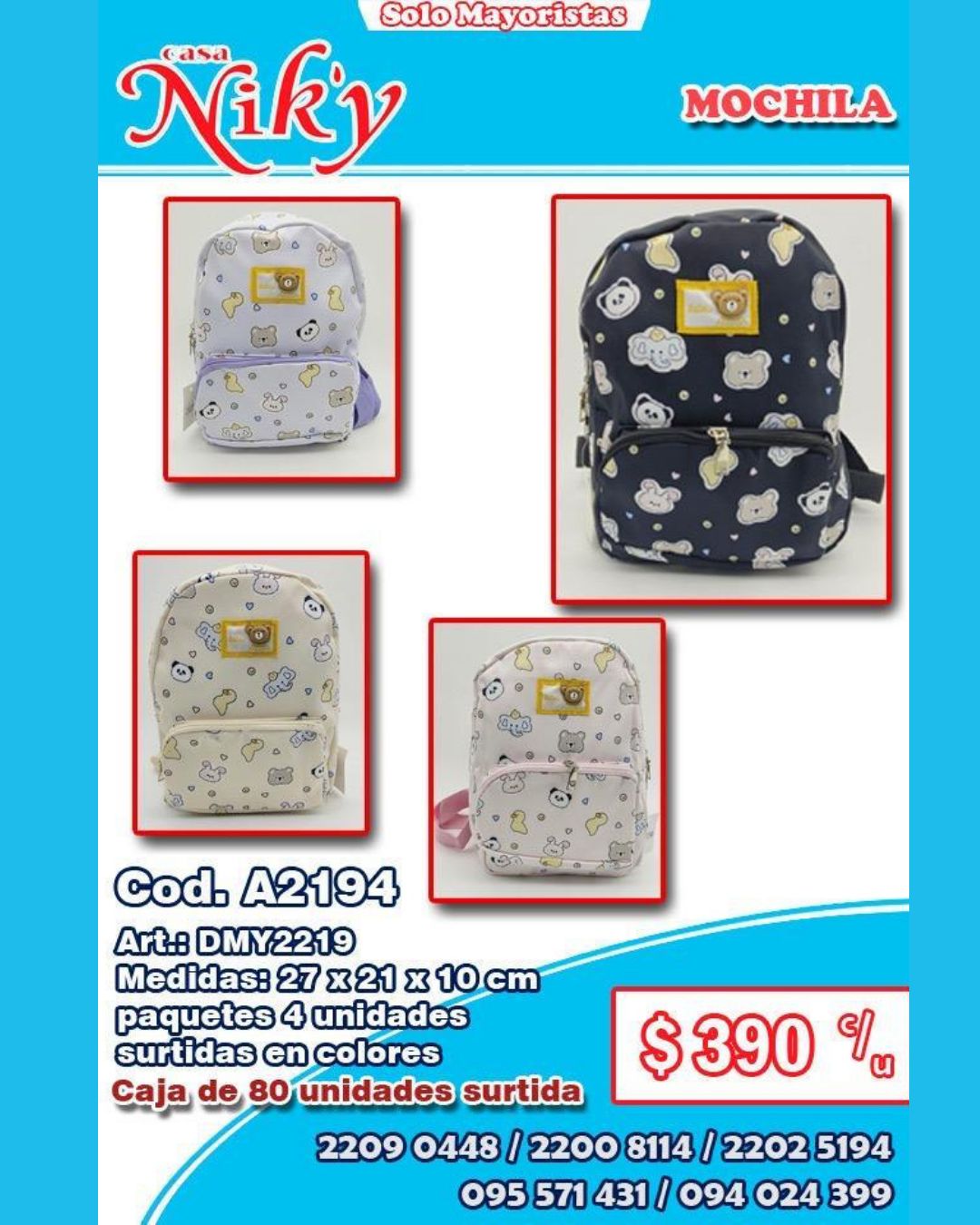 Cod. A2194 Art.: DMY2219 Medidas: 27x21x10 cm paquetes 4 unidades surtidas en colores Precio por unidad Caja de 80 unidades surtida