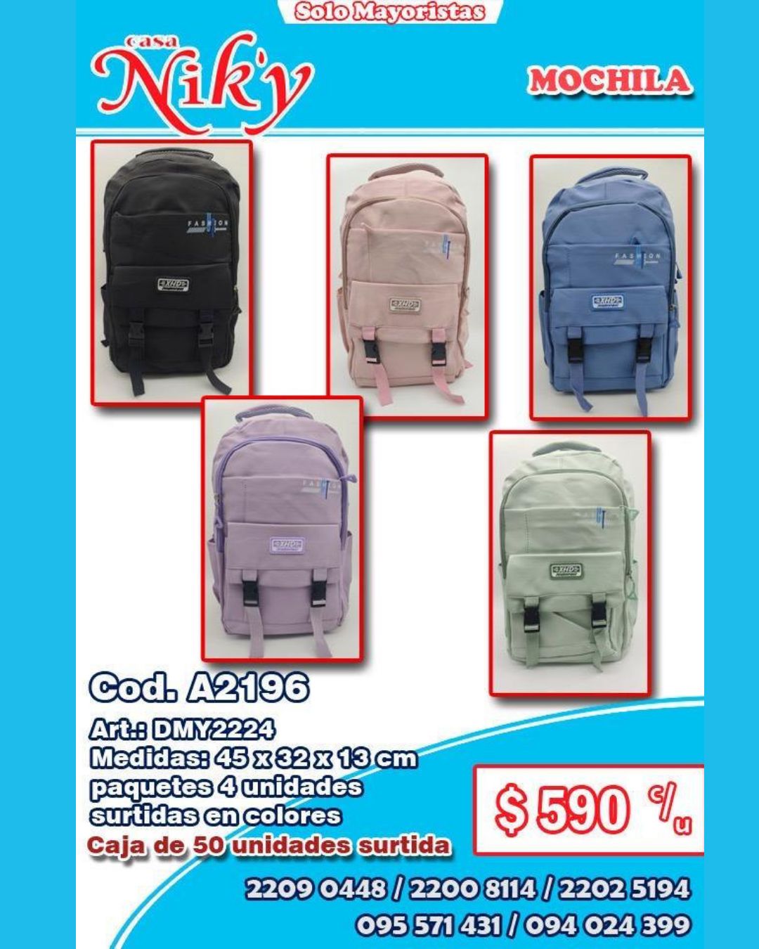 Cod. A2196 Art.: DMY2224 Medidas: 45x32x13 cm paquetes 4 unidades surtidas en colores Precio por unidad Caja de 50 unidades surtida