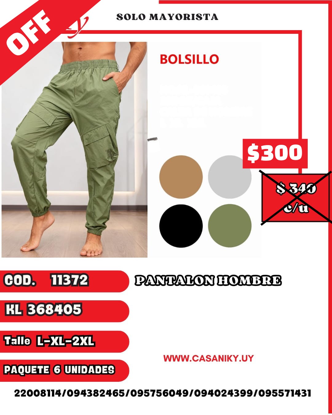 Cod.11372 Art.: KL 368405 Talles: L-XL-2XL Paquetes 6 unidades surtida en talles y colores Precio por unidad