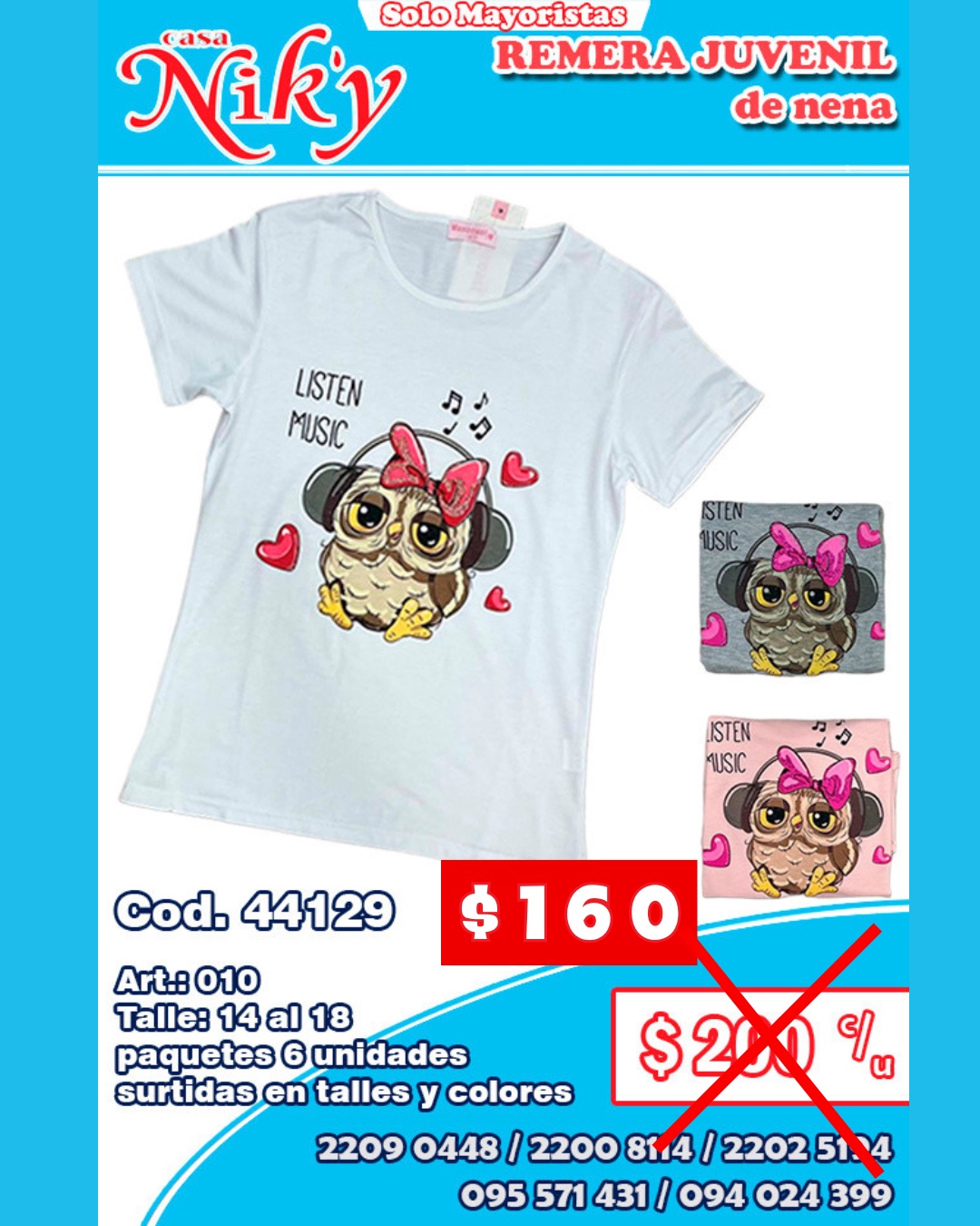 Cod. 44129 Art.: 010 Talle: 14-18 Paquete 6 unidades surtidas en talles y colores