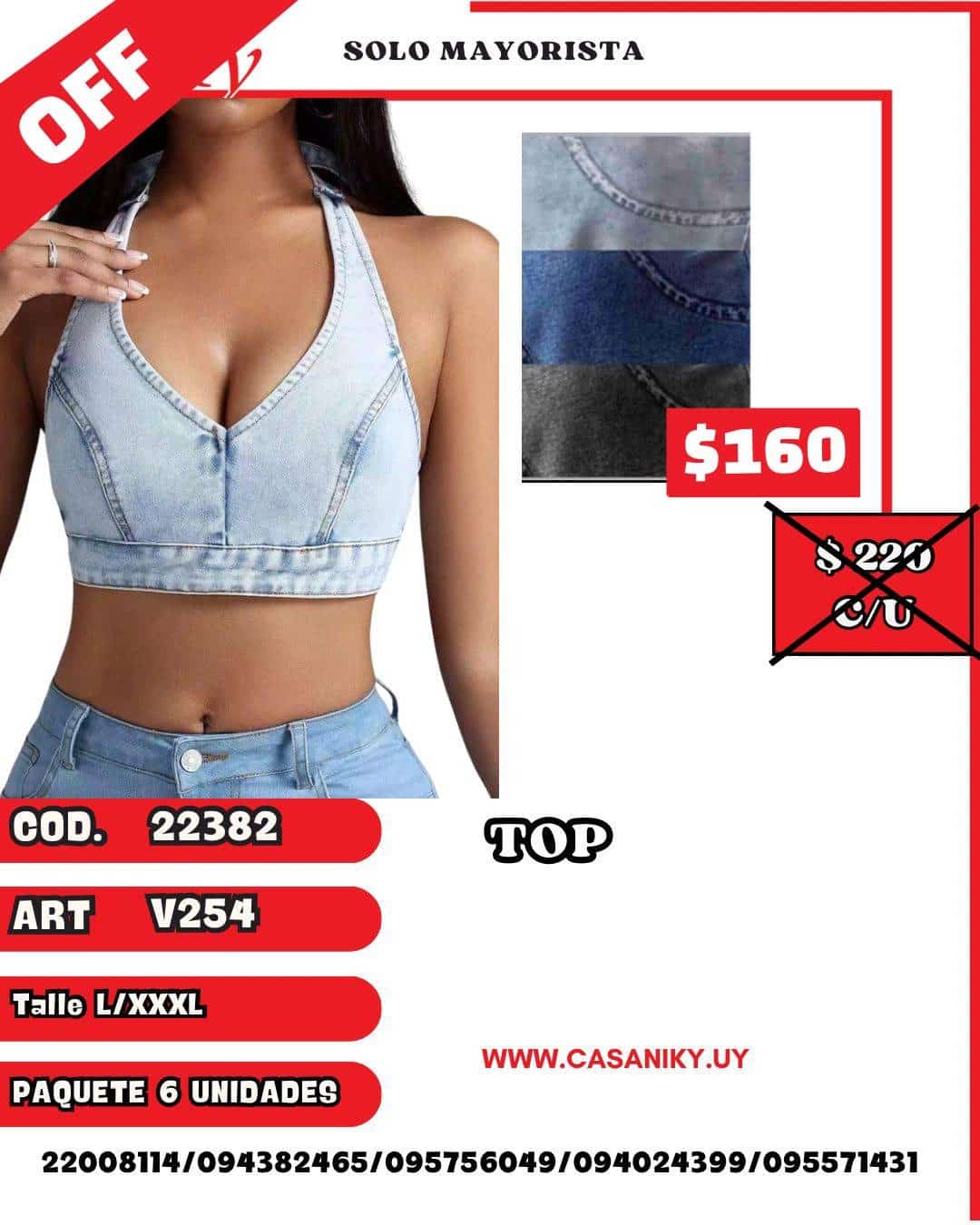 Cod. 22382 Art.: V254 Talles: L/XXXL surtida en talles y colores Paquete por 6 unidades