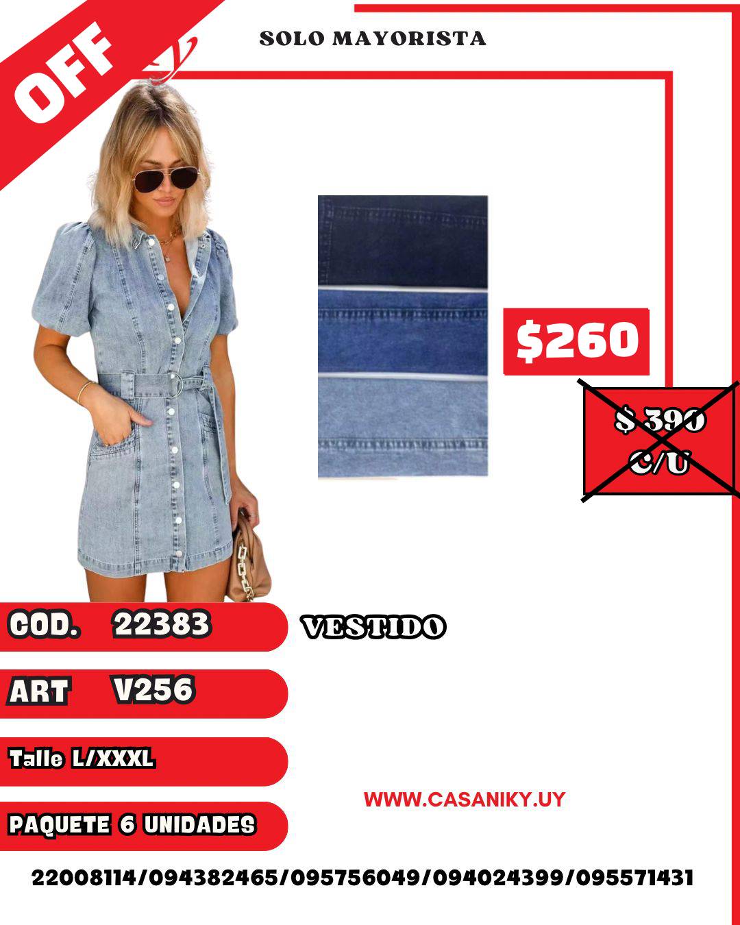 Cod. 22383 Art.: V256 Talles: L/XXXL Paquete 6 unidades surtida en talles y colores Precio por unidad